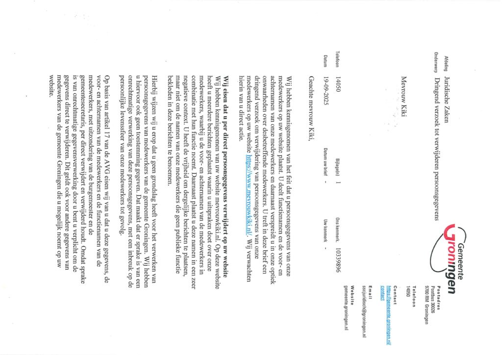 Namens u is deze brief opgesteld door Het Hoofd van een van uw Afdelingen van de Gemeente Groningen.